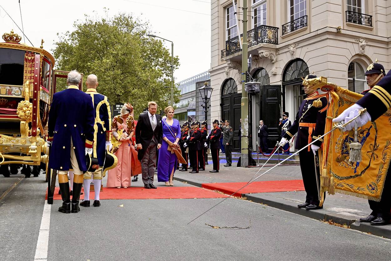 DEN HAAG – Koning Willem-Alexander, koningin Maxima en kroonprinses Amalia arriveren bij de Koninklijke Schouwburg voor Prinsjesdag. De Troonrede wordt voorgelezen in de Schouwburg omdat de Ridderzaal niet beschikbaar is door de verbouwing van het Binnenhof. ANP POOL PATRICK VAN EMST.